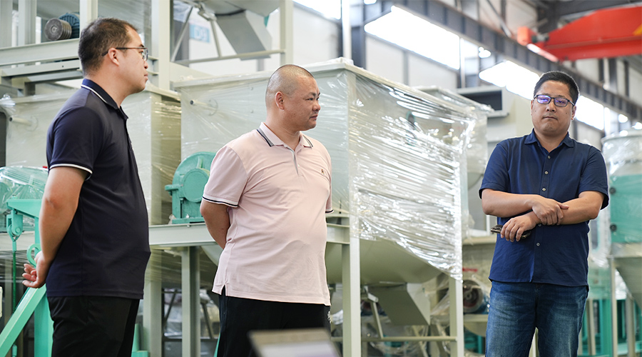 副董事長周記林,陪同調研領導參觀了我公司成品車間。向各位領(lǐng)導匯報91成人機械現(xiàn)階(jiē)段生產經營狀況,實地查看我公司全自動科研專利產品,AT-3A全(quán)自動飼料加工機(jī)組。及其他自動化智能化設備產品。