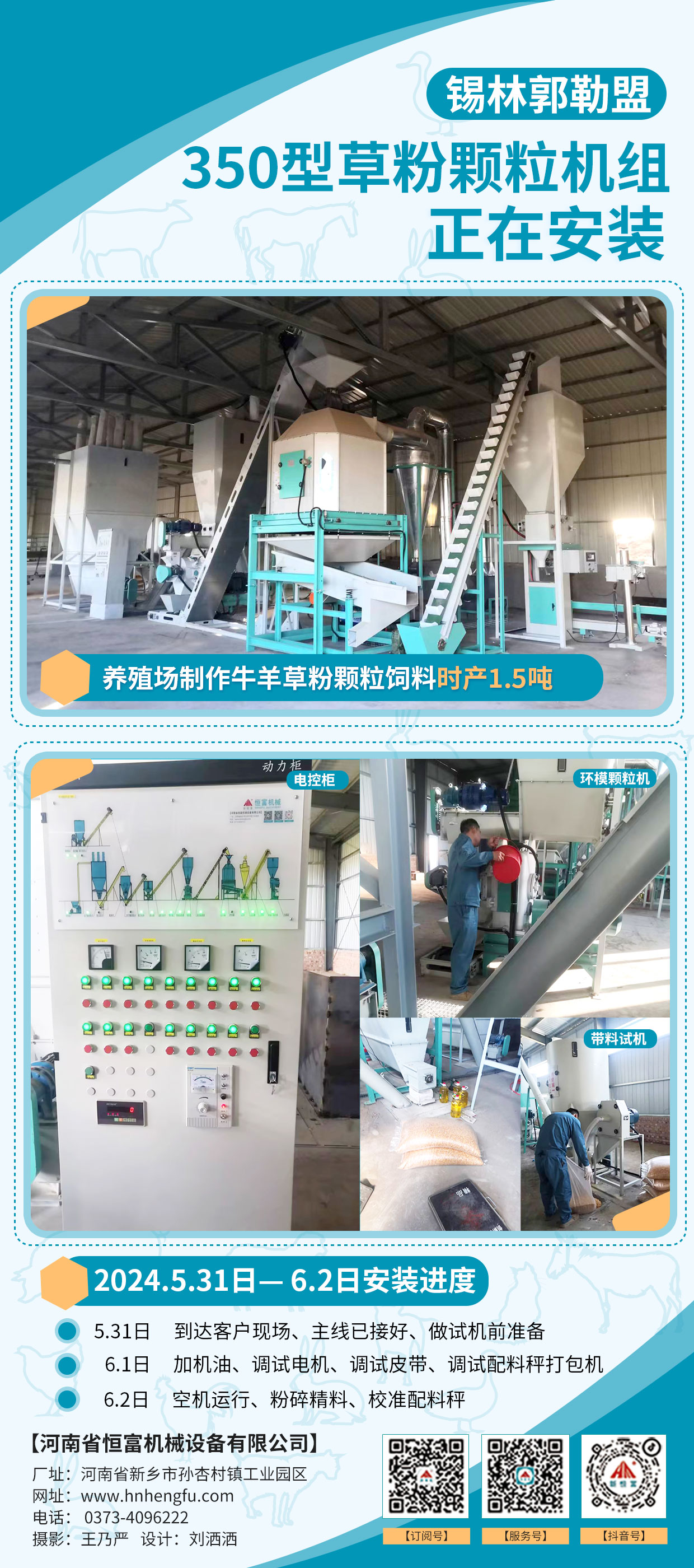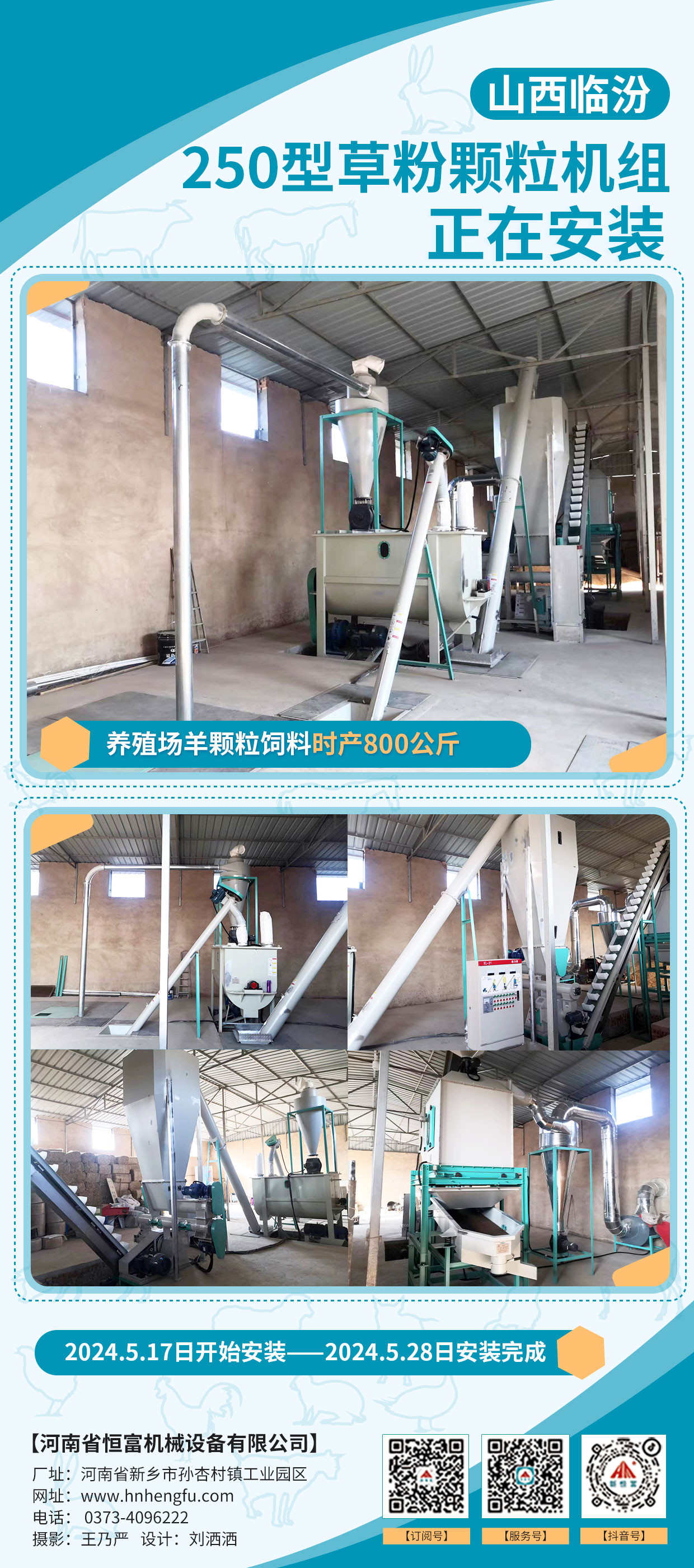 正在安裝的設備(bèi):山西臨(lín)汾250型草粉顆粒飼料機組、貴州304型顆粒飼料機組、內蒙古錫林郭勒350型草粉顆粒飼料機組。