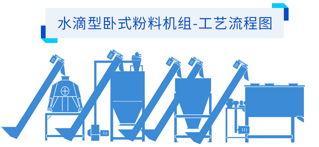 搭(dā)配的設備有水滴型粉(fěn)碎機、配料秤、單軸雙(shuāng)螺(luó)旋(xuán)混合機、提升輸(shū)送設(shè)備、除塵除鐵設備、緩衝倉、電控櫃、配件等。