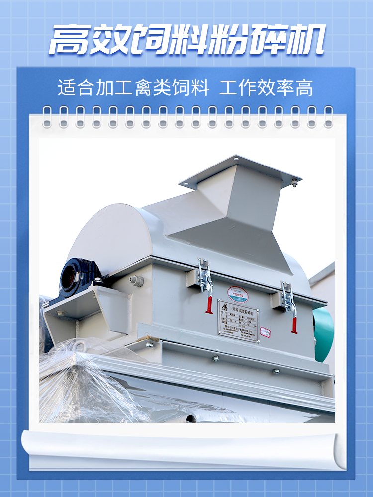 高效飼料粉碎機搭配72片錘片(piàn)以及U型大麵積篩網,粉(fěn)碎速度快(kuài),效率高。粉碎出來(lái)的顆(kē)粒料多,粉料少,更便於禽類動物進(jìn)行(háng)采食(shí)。