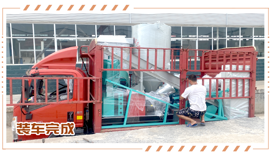 河南(nán)駐馬(mǎ)店--時產2噸(dūn)臥式粉狀飼料加工機組,已裝車完成,順利發車