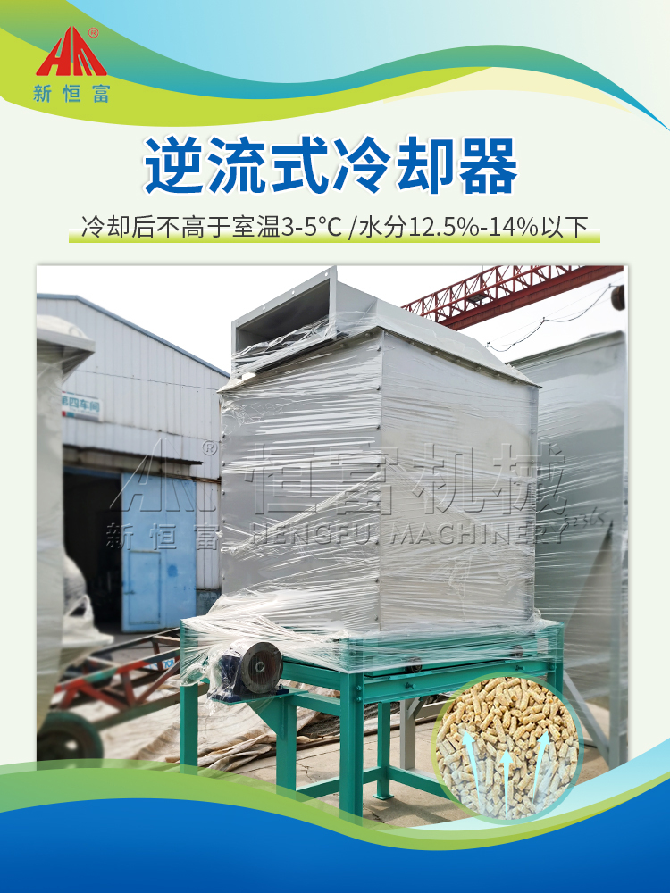 逆流式冷卻(què)器,通常安裝在成套(tào)飼料(liào)機組的製粒機和包裝機(jī)之間,主要是利用物流與氣流的相對運動來把高溫度、高濕度(dù)的顆粒飼料進行烘幹和冷卻,使其成(chéng)為可(kě)以直接飼喂和包裝的(de)成品飼料。