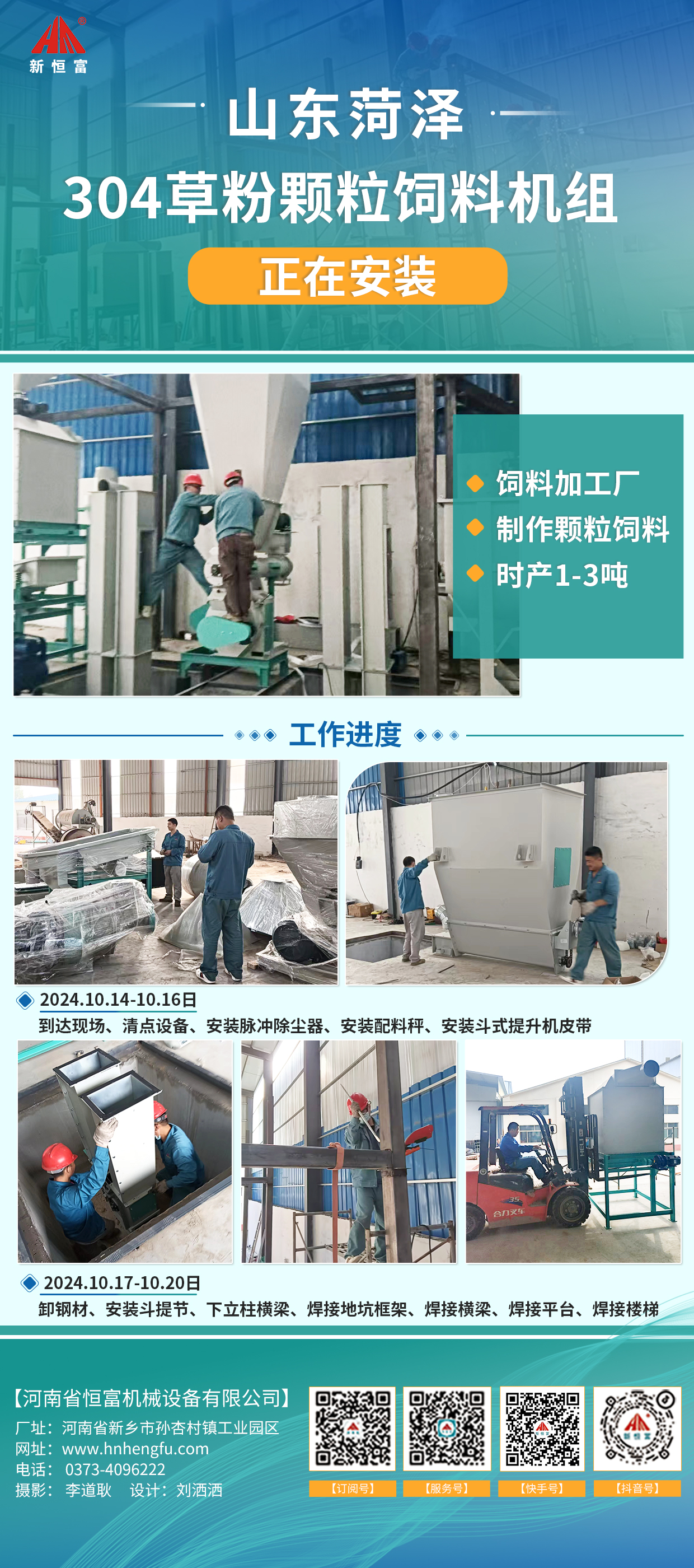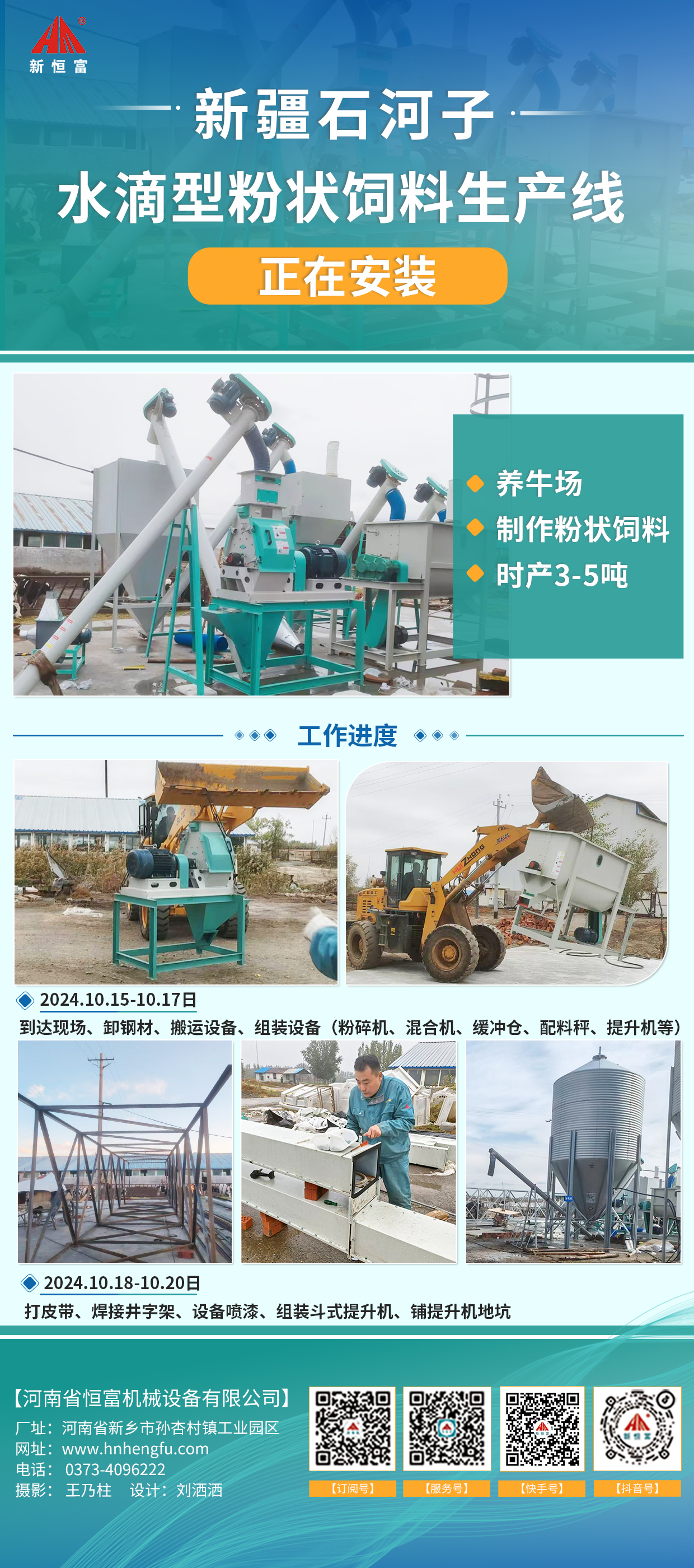 河南恒(héng)富機械-成(chéng)套飼料加工設備安裝進度【2024-10-15】