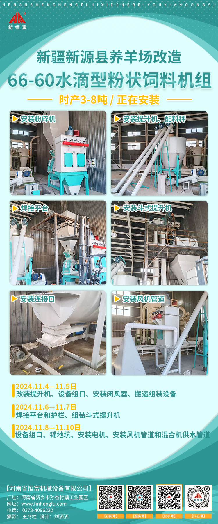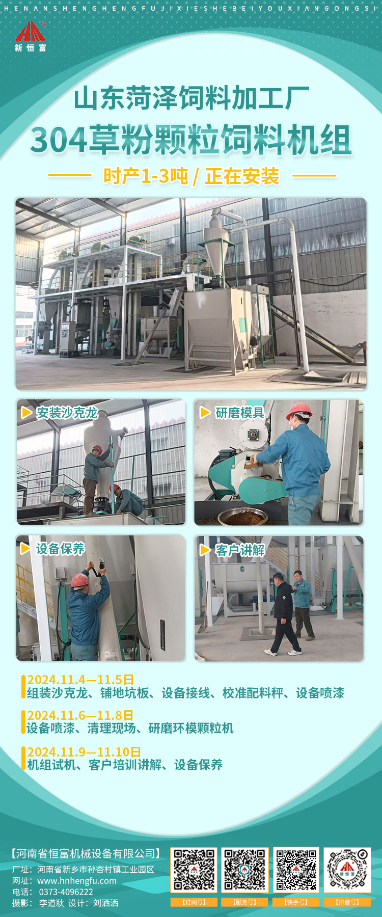 河南恒(héng)富機(jī)械-成套飼料加工設備安裝進度【2024-10-08】