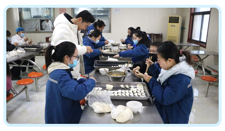 每位員工臉上都洋溢著喜悅與幸福的笑容。在冬至這天不僅能吃上熱騰騰的(de)餃子,還能為同(tóng)事們慶祝生日。
