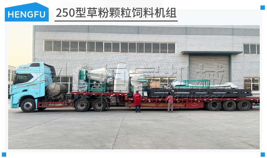新疆伊犁--時產0.5-1噸250型(xíng)草(cǎo)粉顆粒(lì)飼料加工機組,現已裝車完成,順利(lì)發車!