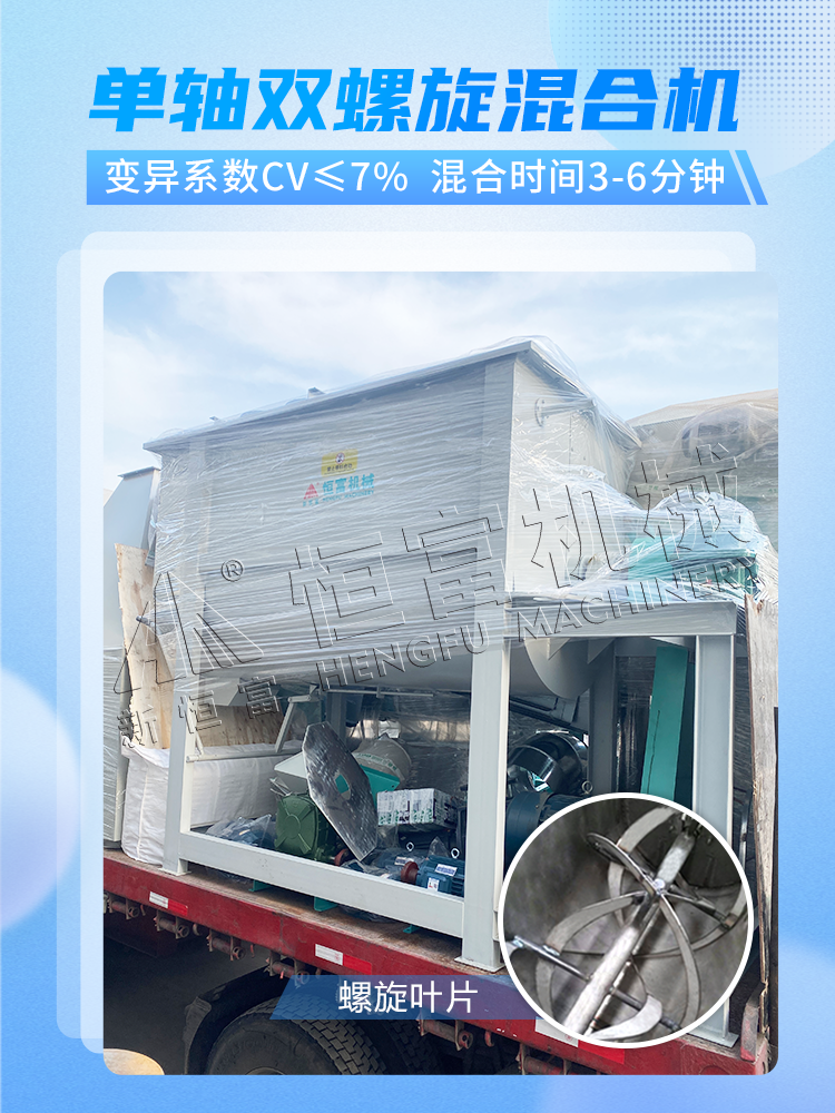 臥(wò)式單軸雙螺帶飼料混合機混合均(jun1)勻度高,變(biàn)異係數(shù)CV≤7%。結構簡單合理,維修(xiū)方便,適用於大、中(zhōng)、小(xiǎo)型養殖場和飼料加工廠以(yǐ)及幹粉混合行業使(shǐ)用。