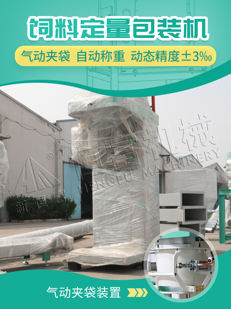 飼料包裝機能(néng)自動完成夾袋、灌裝、稱重、輸送、縫口、切線等全部流程。