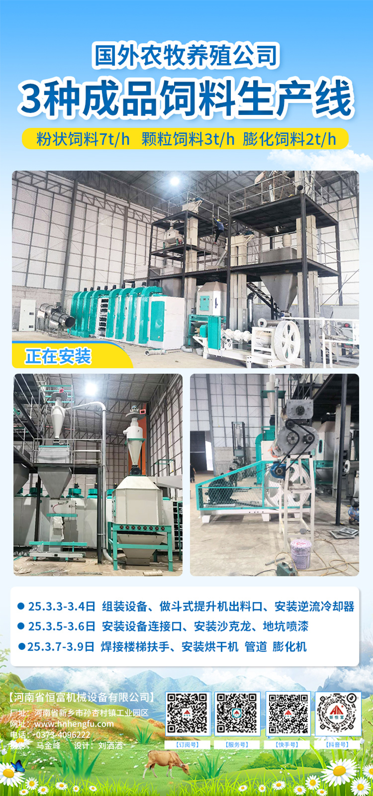 國(guó)外現代農業股份有限公司,時(shí)產2-7噸3種成(chéng)品飼料生產線正在安裝。