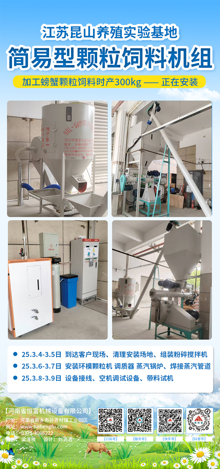 江蘇昆山螃(páng)蟹研究實驗基地,時產300公斤螃蟹(xiè)下(xià)沉顆粒飼料生產(chǎn)線正在安裝(zhuāng)。