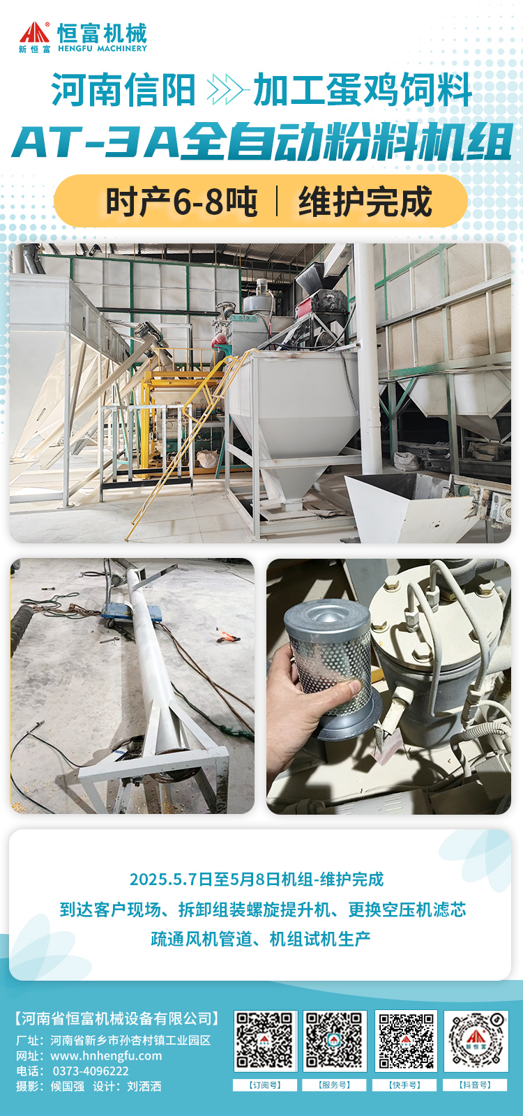 2025年5月7日下午到達客(kè)戶現場:檢查機器和更(gèng)換空壓機慮芯,輸通風機管道(dào),維護5月8日完成,用時僅一天半天。