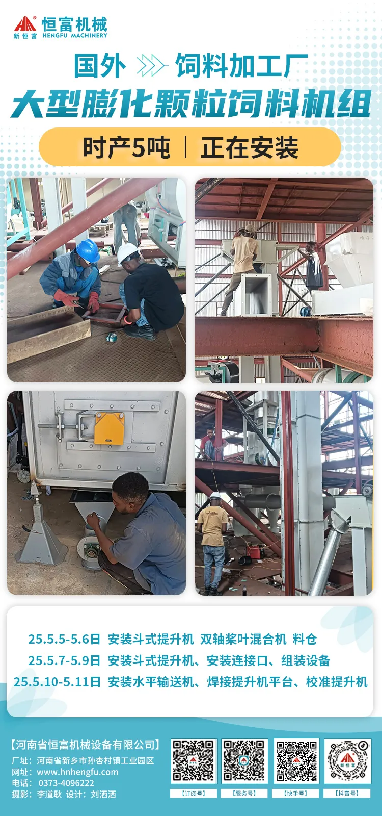 2025年5月5日至5月11日(rì)主要工作內容:焊料倉、打地坑、組裝鬥式提升機(jī)、沙克(kè)龍、傳送帶;焊接料倉、機(jī)器平台(tái)、組裝固定料倉、改混合機傳感器地角以及組裝皮(pí)帶機(jī)等工作。