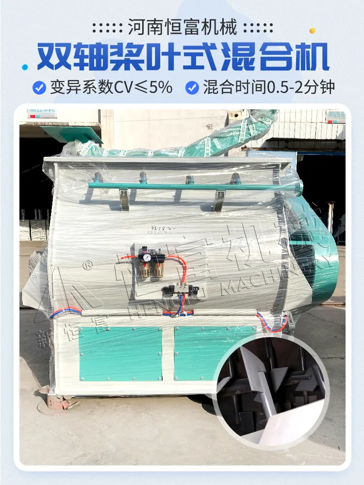 該(gāi)機組主要設備有:脈衝飼(sì)料除塵器、雙軸槳葉飼料混(hún)合機、鬥式提升機、旋(xuán)轉分配器、配料秤、飼(sì)料自動定(dìng)量打包機、PLC控製係統等。