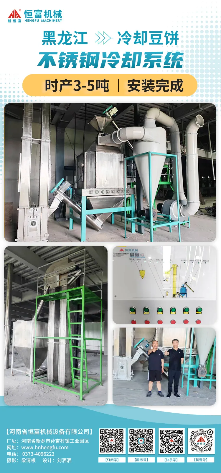 黑龍江(jiāng)客(kè)戶訂購的豆餅不鏽鋼冷(lěng)卻(què)係統(tǒng)安裝完成(chéng)!
