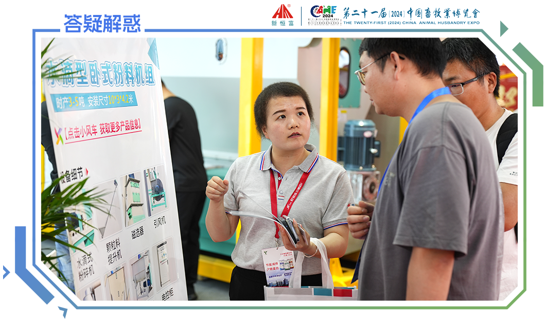 洽談專區(qū)內,現(xiàn)場工作人員以飽滿的熱情,接待了來自國內外各地的養殖企業、飼料加工廠、經銷商(shāng)和合作(zuò)夥伴,並為前來谘詢的新老朋友耐心講解91成人機械攜帶的技術與產品。