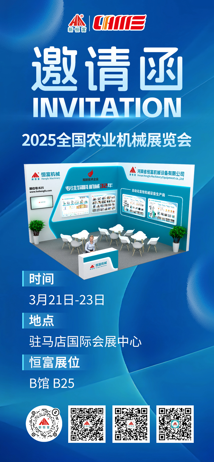 展(zhǎn)會邀請 | 2025全國農機(jī)展(zhǎn)開幕在即,91成人機械邀您相約駐馬店