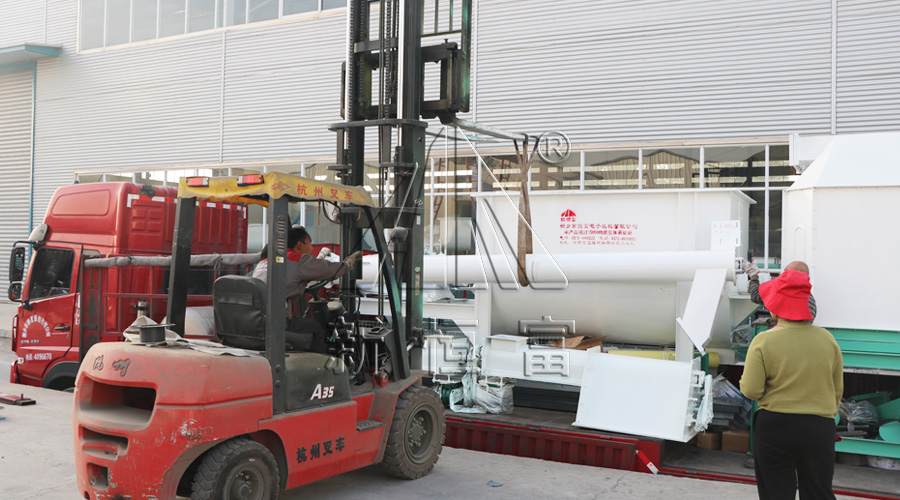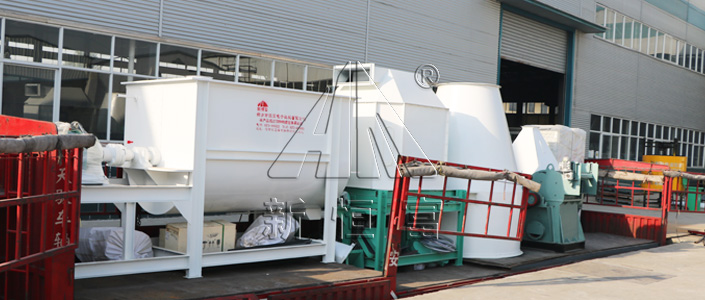 本次發貨的主要設備有: 多功(gōng)能粉碎機、420環模顆粒機和配套喂料(liào)器、螺旋輸送機、配料秤、2噸臥式草粉混合機、4立方米料倉、鬥(dòu)式提(tí)升機、注水泵、逆流冷卻(què)器、沙克龍、掛篩、風機、配電櫃、自動打包機等(děng)。